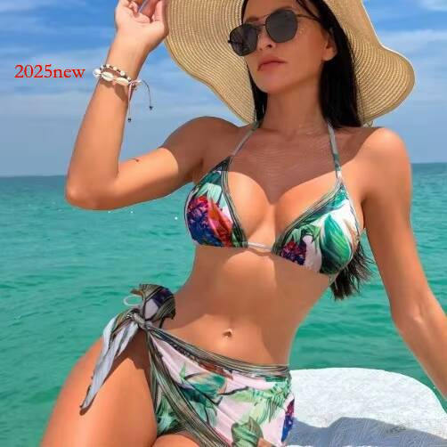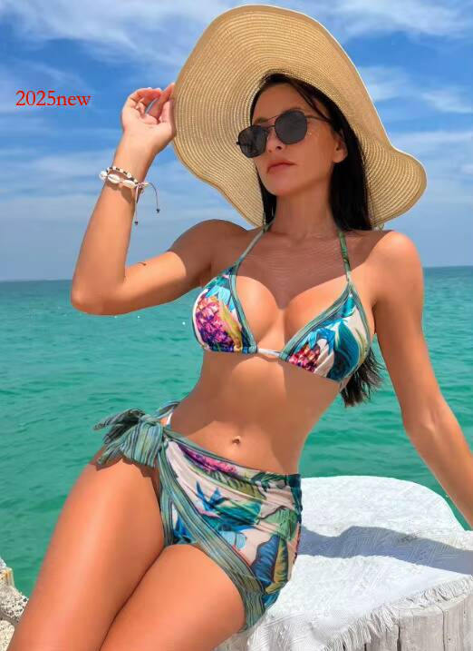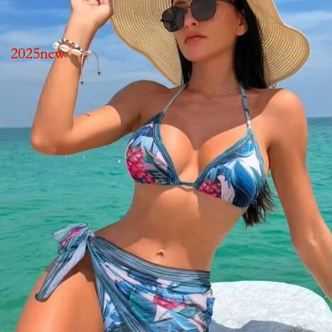 2025 hot New Bikini Three-Piece Set Swimsuit Sexy Print Hot Girl Outfit Beach Vacation Swimwear for Women