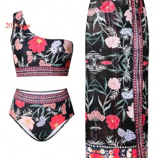 2025 hot New Style Two-Piece Swimsuit for Women Sexy One-Shoulder High-Waist Three-Piece Bikini Swimwear