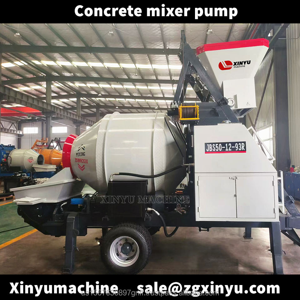2025 hot sale concrete mixing pump 40cbm/h mobile diesel concrete mixer with pump pipe concrete pumping machine remote mixing