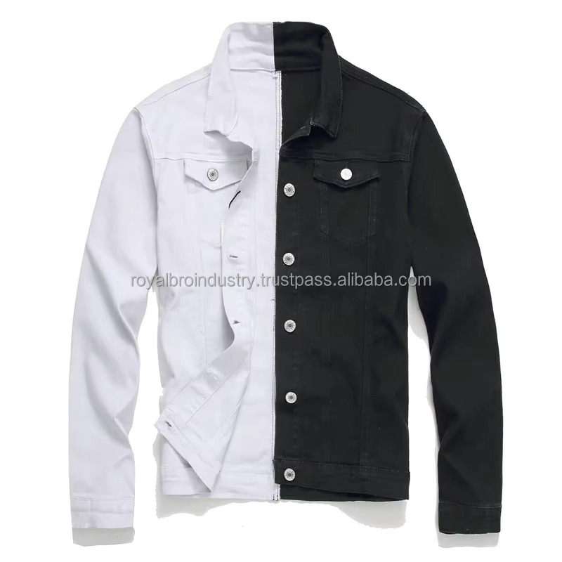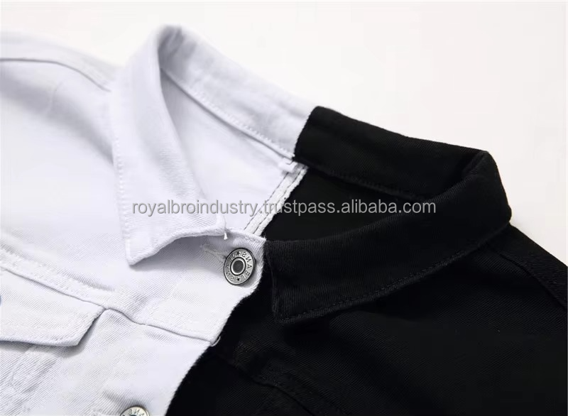 2025 latest men's Streetwear Black & Slim Fit Motorcycle Hip Hop Cotton Denim Coat trending sets Two-Tone Patchwork Jean Jacket