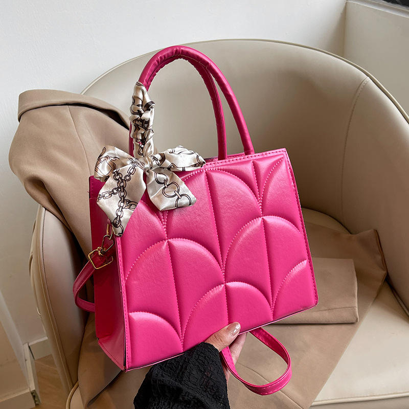 2025 new multi-color quilted handbag with silk scarf decoration, elegant and exquisite