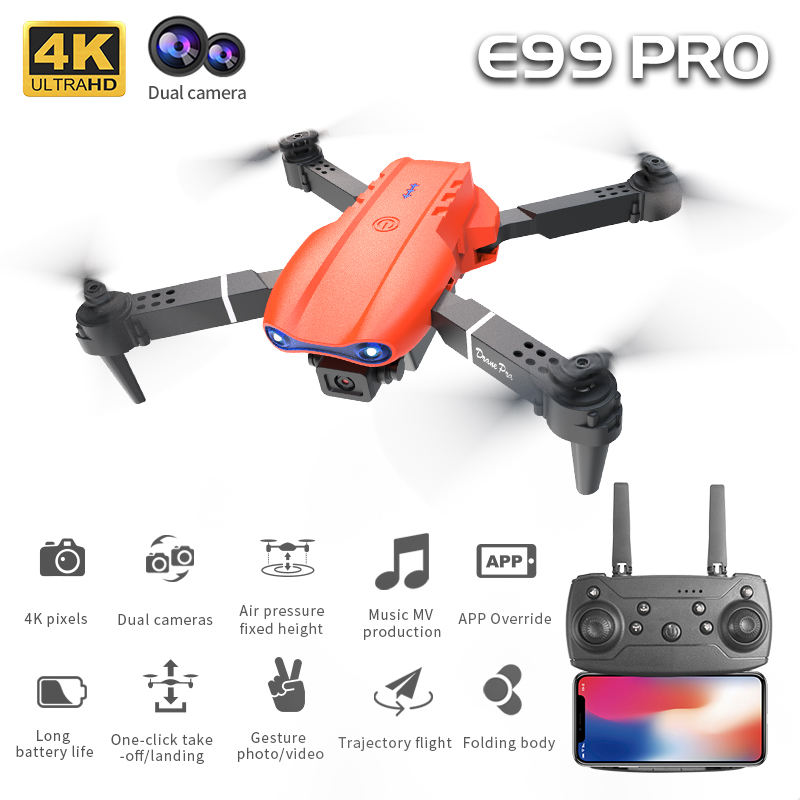 Headless mode, Altitude Hold Mode, 3D View Mode, Dual Camera, Foldable, Voice Control, One Key Takeoff / Landing, App Control, 3D flip, With Camerafunction