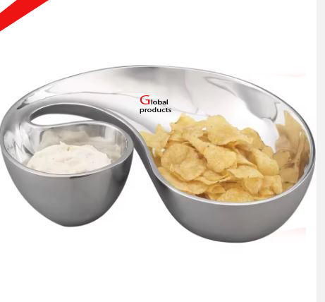 2025 stainless steel metal silver finished round shape chip and dip serving bowl for hotel restaurant and bar
