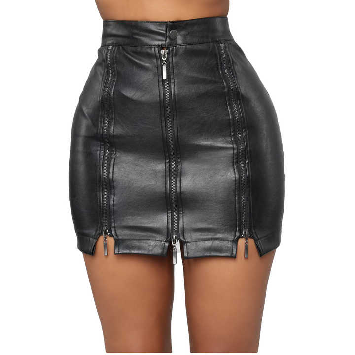 2025 summer new high waist hip skirt nightclub PU leather zipper patchwork skirt sexy leather short skirt