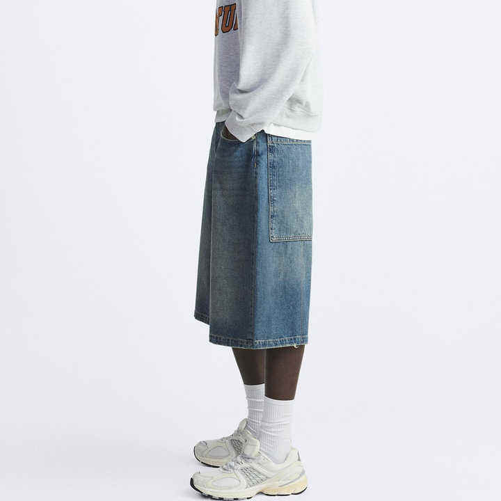 2025 wholesale breathable Custom Embroidery Denim Washed Shorts Loose Fit Jeans Shorts for Men's Denim Jorts for Men