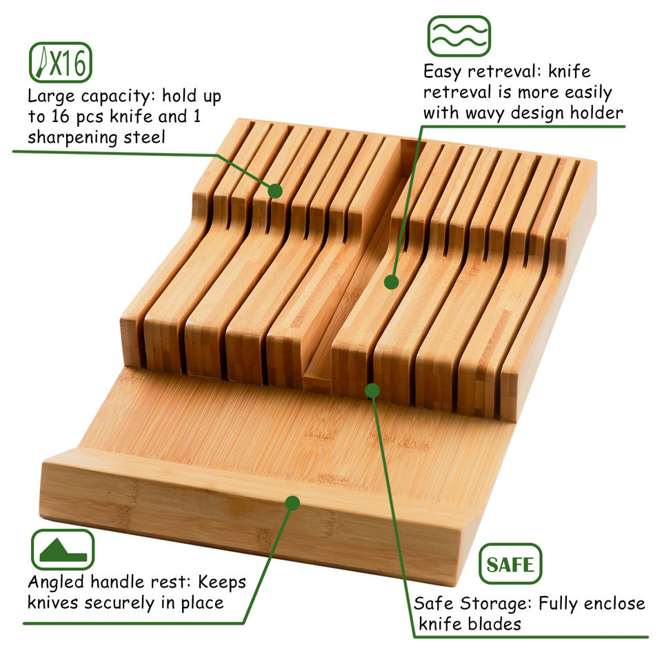 Xinghua W202 2026 Bamboo Kitchen 17 Slots Drawer Knife Rack Insert