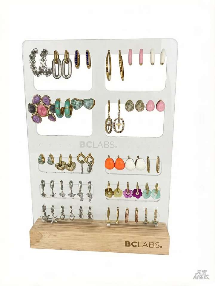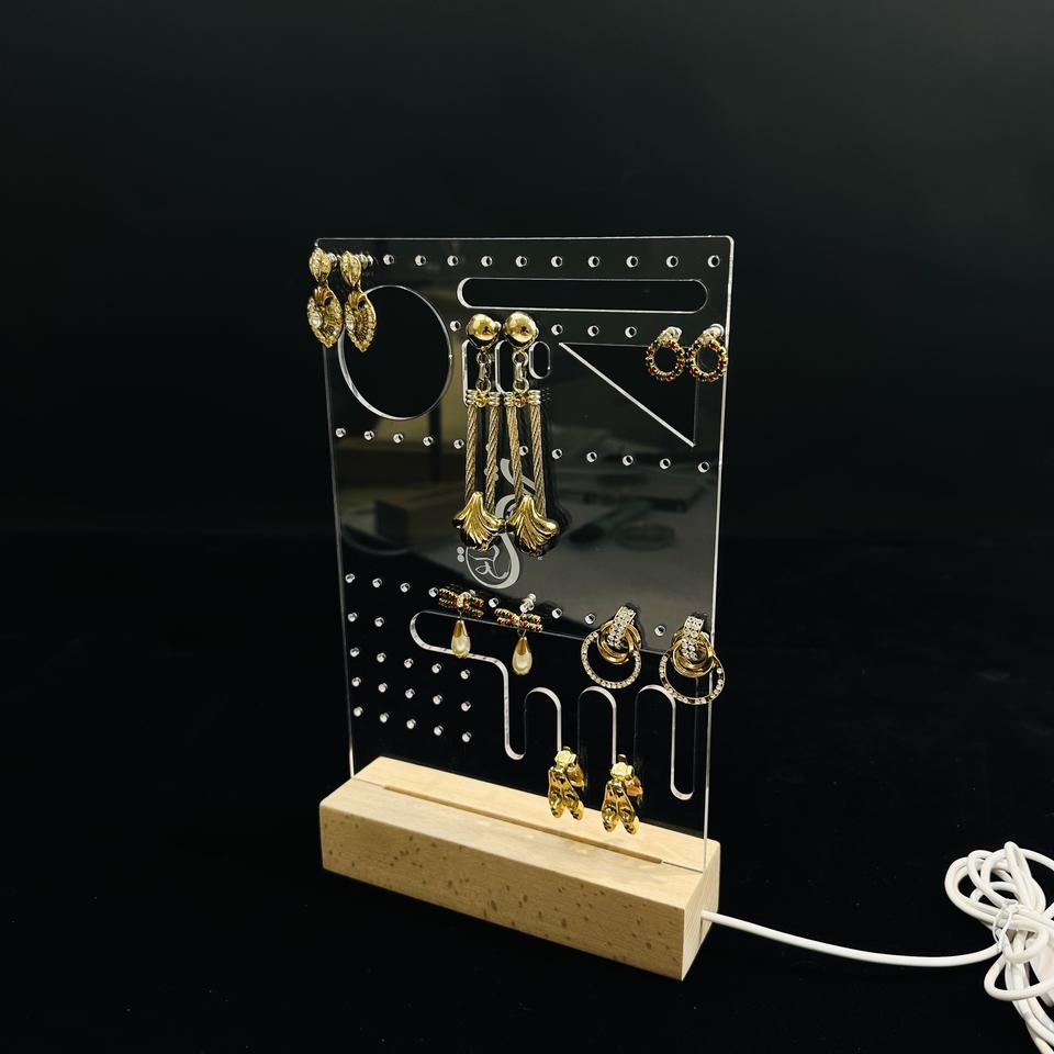 2026 Best Sales Earrings Holder Acrylic Jewelry Display with Wooden Base for Packages and Jewelries