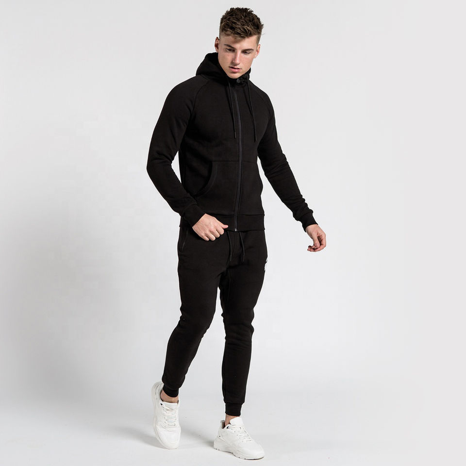 2026 Black Casual Winter Men Zipper-up Fleece Hoodie Sweat Suit Custom Jogger Set 100% Polyester Manufacture Pakistan Tracksuit