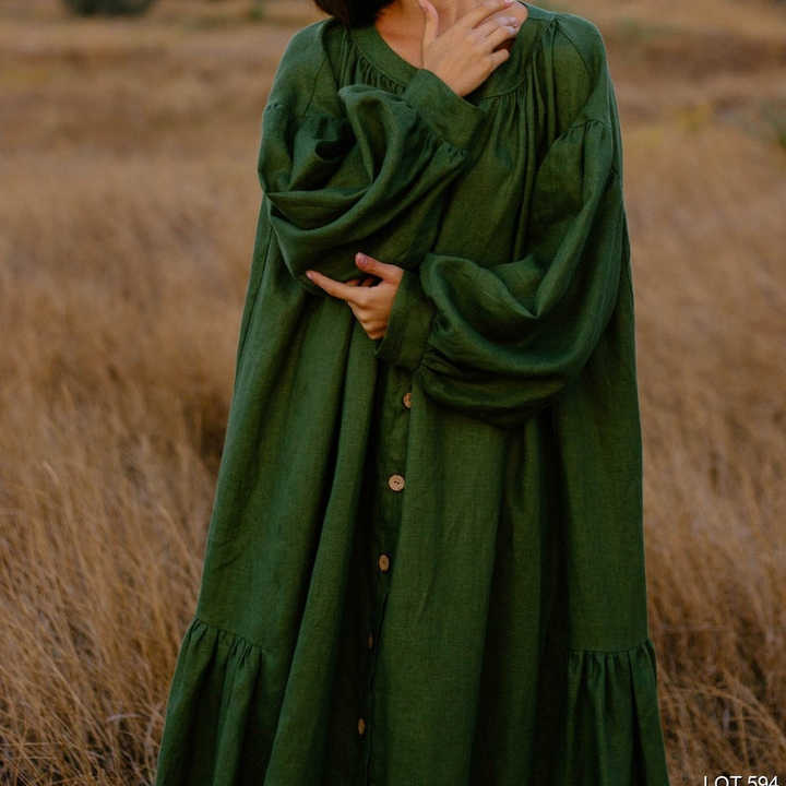 2026 Black Solid Natural Formal Summer Women's Crepe O-Neck Long Sleeve Button Embroidery Full Palazzo Floor-Length Dresses