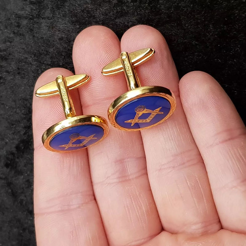 2026 Brand New High Quality Custom Made Freemason Masonic Regalia Blue Gold Cufflinks for Engagement Gift Master Mason
