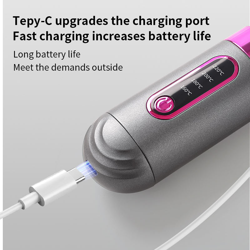 2026 Cordless Mini Portable Home Hair Styling Tool USB LCD Display French Ionic Hair Straightener Brush with Temperature Display
