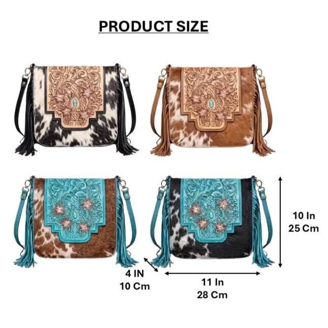 Product name:Hand Tooled Cowhide Leather Fringe Crossbody Bag