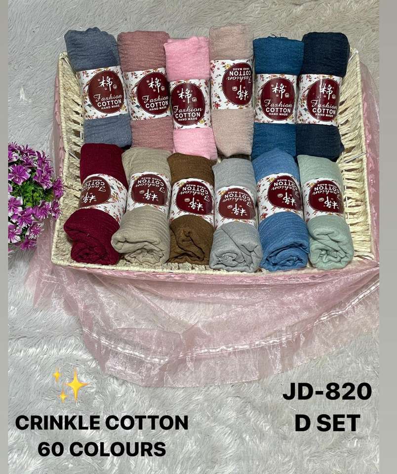 2026 Crinkle Cotton Hijab B-Set 12 Premium Handmade Scarves Floral Solid Designs Chic Earthy Pastel Tones. Soft Breathable
