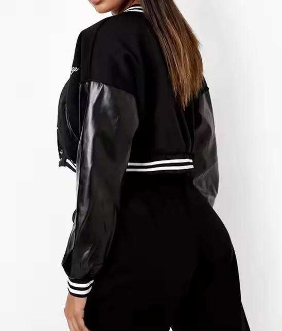 2026 Custom Chenille Embroidery Patches Women Regular Black Varsity Bomber Jacket OEM Wool Sleeves Breathable College Baseball