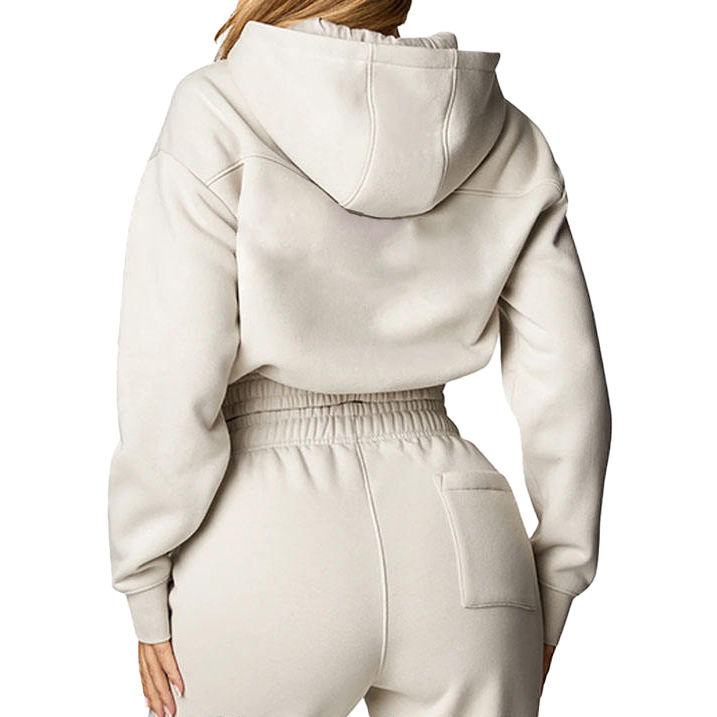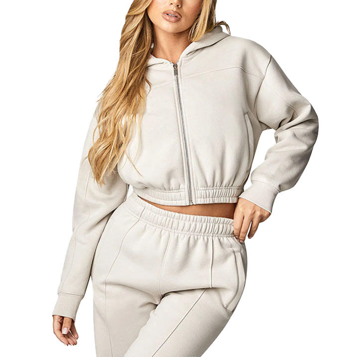 2026 Custom Logo High Quality Women Sweat Suit Zip-Up Hoodie Skinny Jogger Set Plain Fleece Cropped 100% Cotton Tracksuits