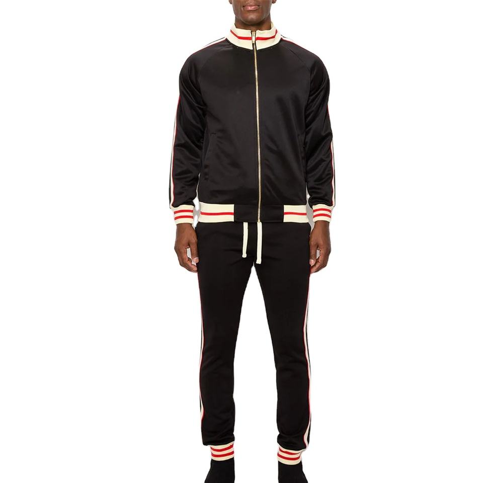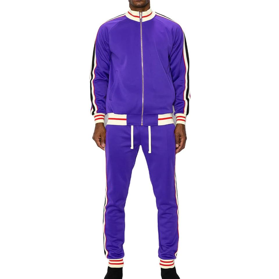 2026 Custom Side Stripe Zip up Track Suit Sportswear Casual Jacket and Pants Set Men Jogger Tracksuits