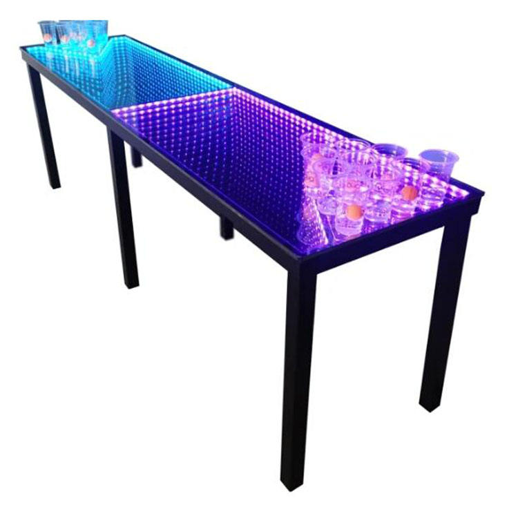 2026 Customization Service Infinite LED Glass 4 Legs Removable Beer Pong Table