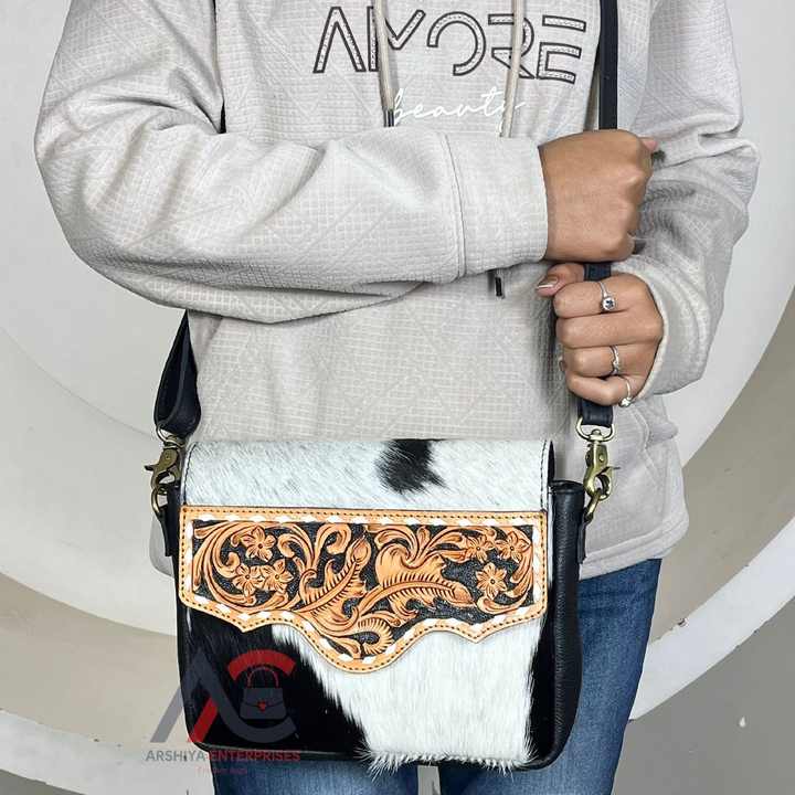 Hand Tooled Cowhide Crossbody Bag