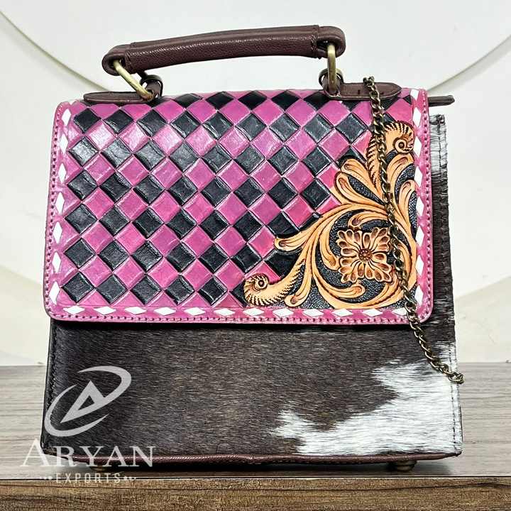 Product name:Hand Tooled Checkered Leather Crossbody Bag