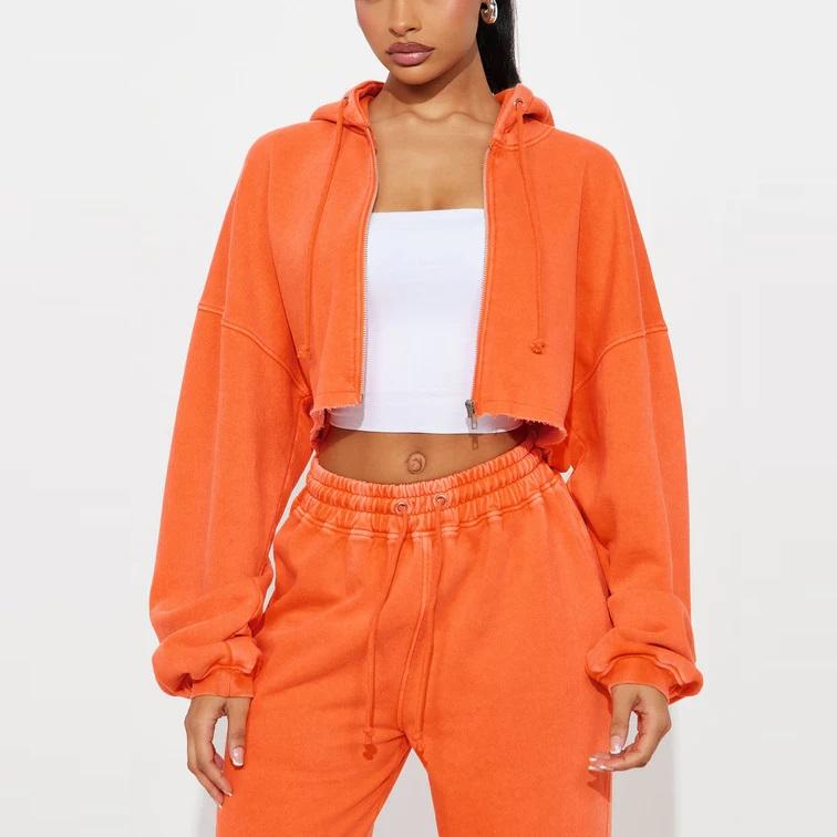 2026 Distressed Zip Hoodie Custom Logo Women's Winter Two-Piece Sweatpants Set 100% Cotton Eco-Friendly Joggers