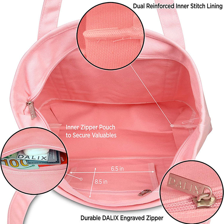 2026 Eco-Friendly Recycled Reusable Lightweight High Quality Plain Tote Bag Zipper Custom Logo Printed Canvas Material