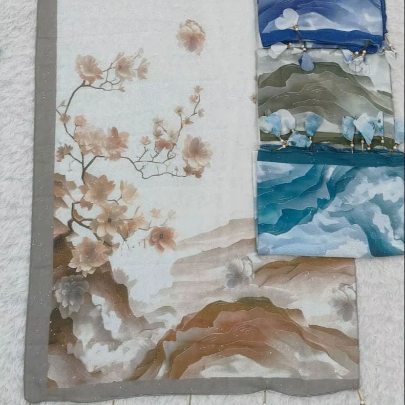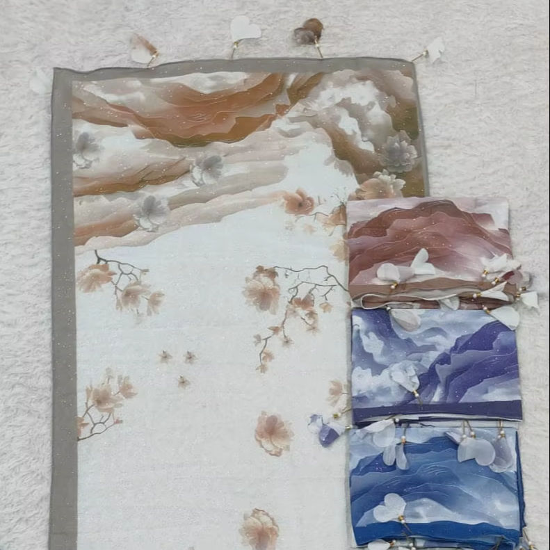 2026 Elegant Floral Print Cotton Linen Satin Hijab Set Lightweight Summer Scarf Tassels Shimmer Finish Multi-Color Rose Patterns