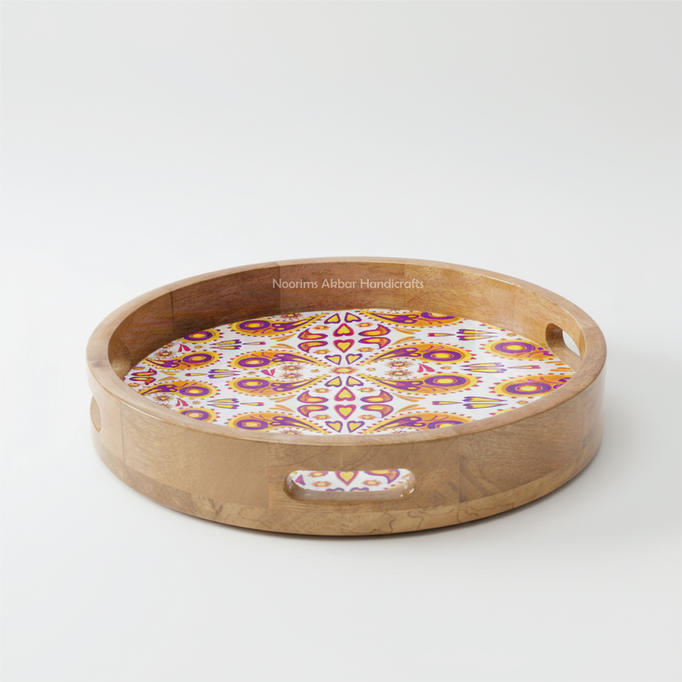 2026 Enamel Coated Wooden Serving Tray Modern Rectangle Design for Wedding Kitchen Decorative Tableware round finish Wholesale