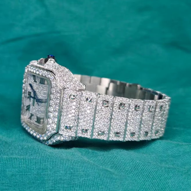 2026 Factory High End Luxury Square Antique Business Moissanite Diamond Quartz Watch Custom Stainless Steel Waterproof ETA