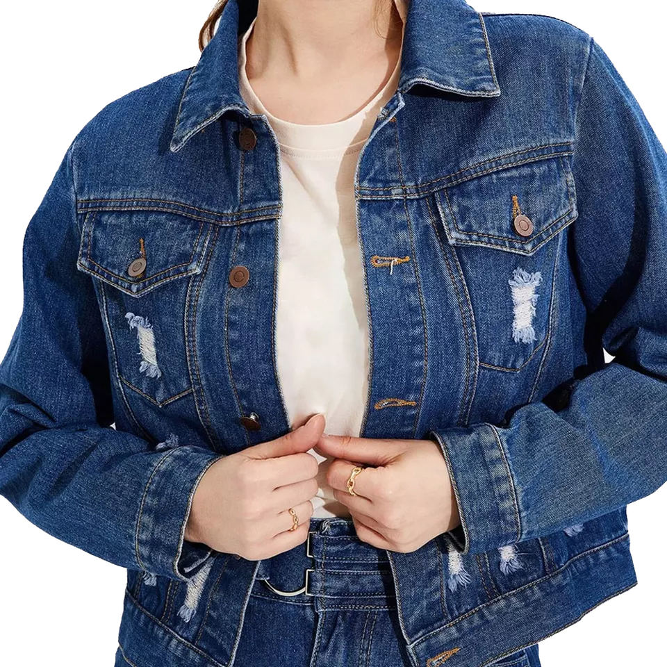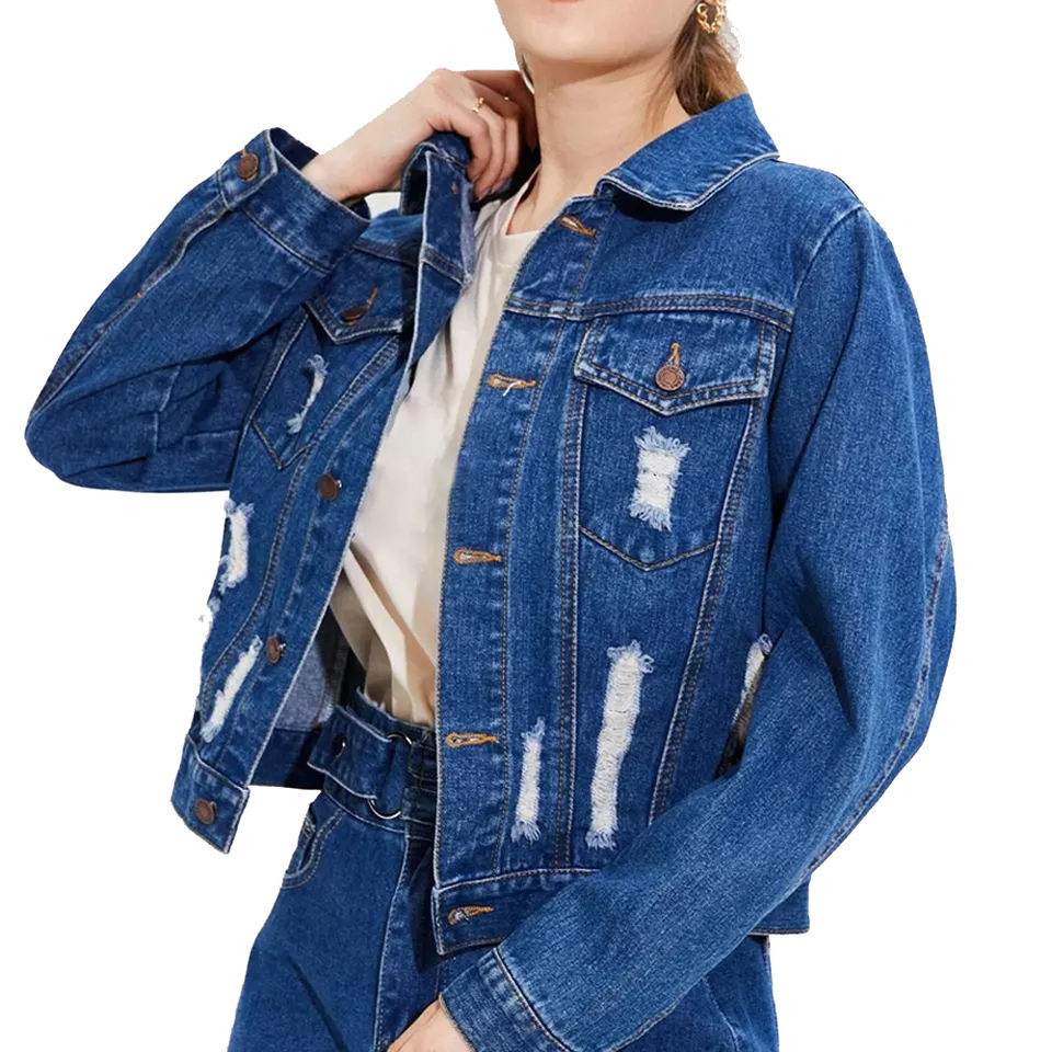 2026 Fashion Casual Ripped Crop Denim Jacket Outwear Women Jean Jackets Ladies Stone Washed Distressed Denim Jackets