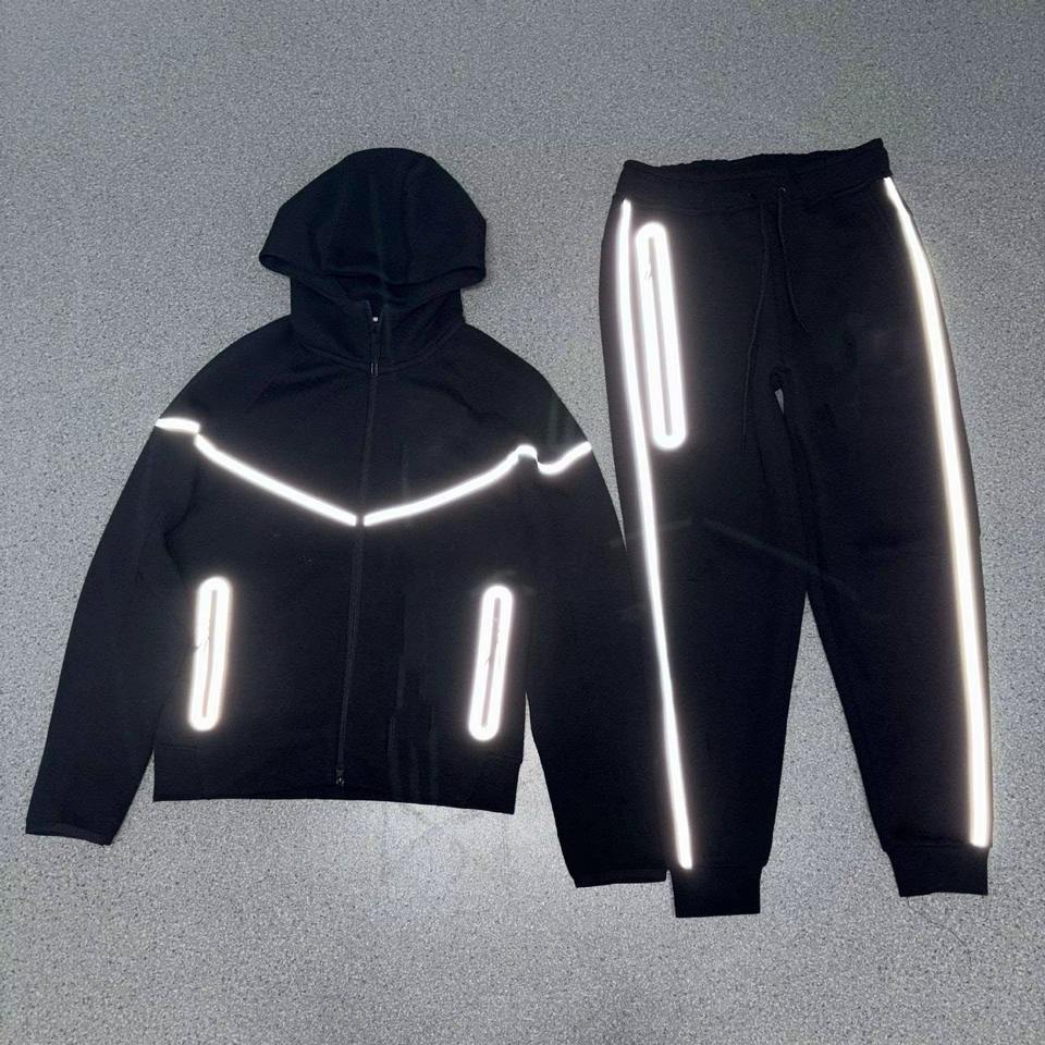 2026 Fashion Custom Reflecetive Tech Fleece Men Tracksuit 2pcs Heavyweight Men Hoodie and Pant for Running
