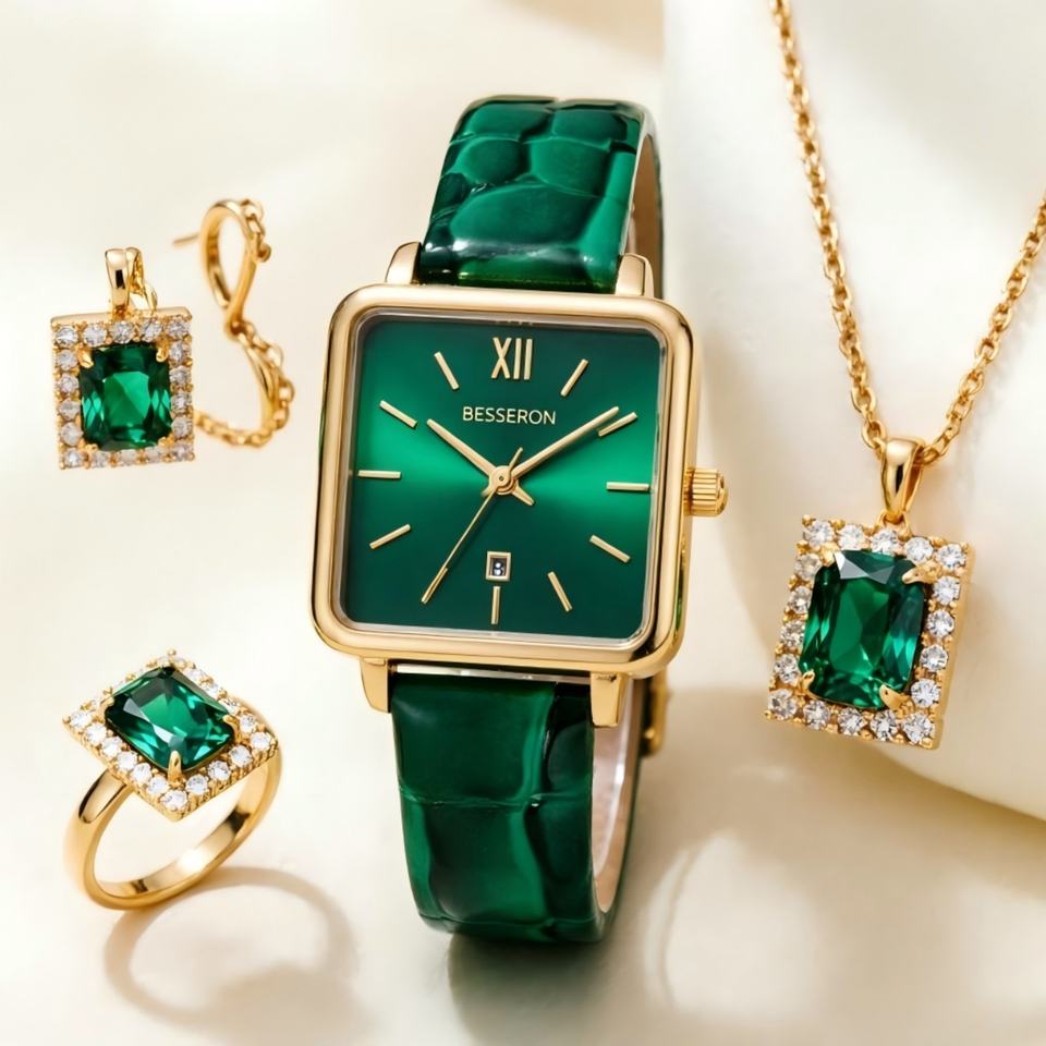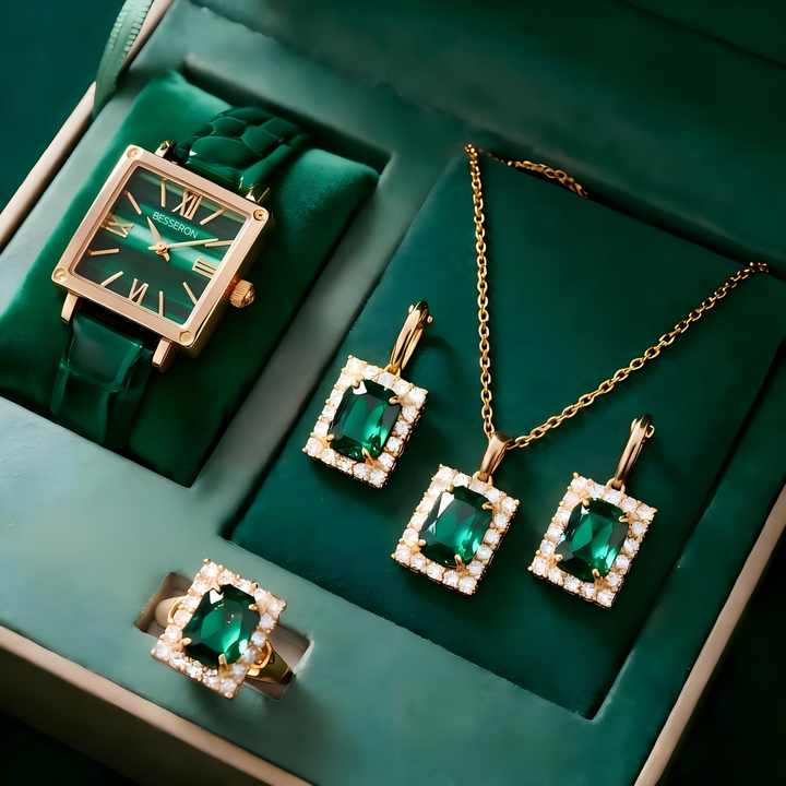 2026 Fashion Women Quartz Watch 5PCS Set Luxury Watch Ladies Ring Necklace Earrings Rhinestone Fashion Watch Set