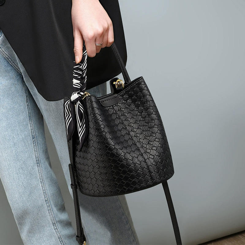 2026 Fashion genuine leather women's Bucket bag Elegant Lady's high-end woven Sling Bag small handbag Cosmetic luggage Bag