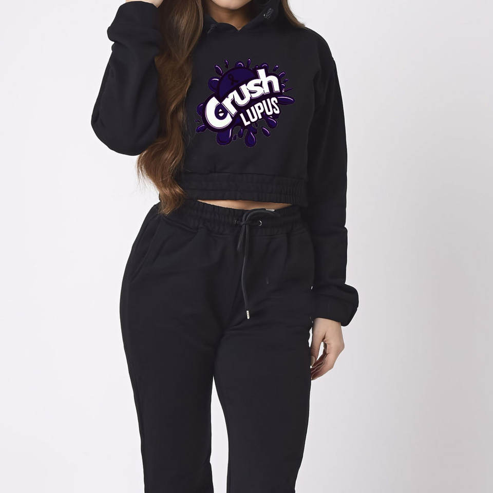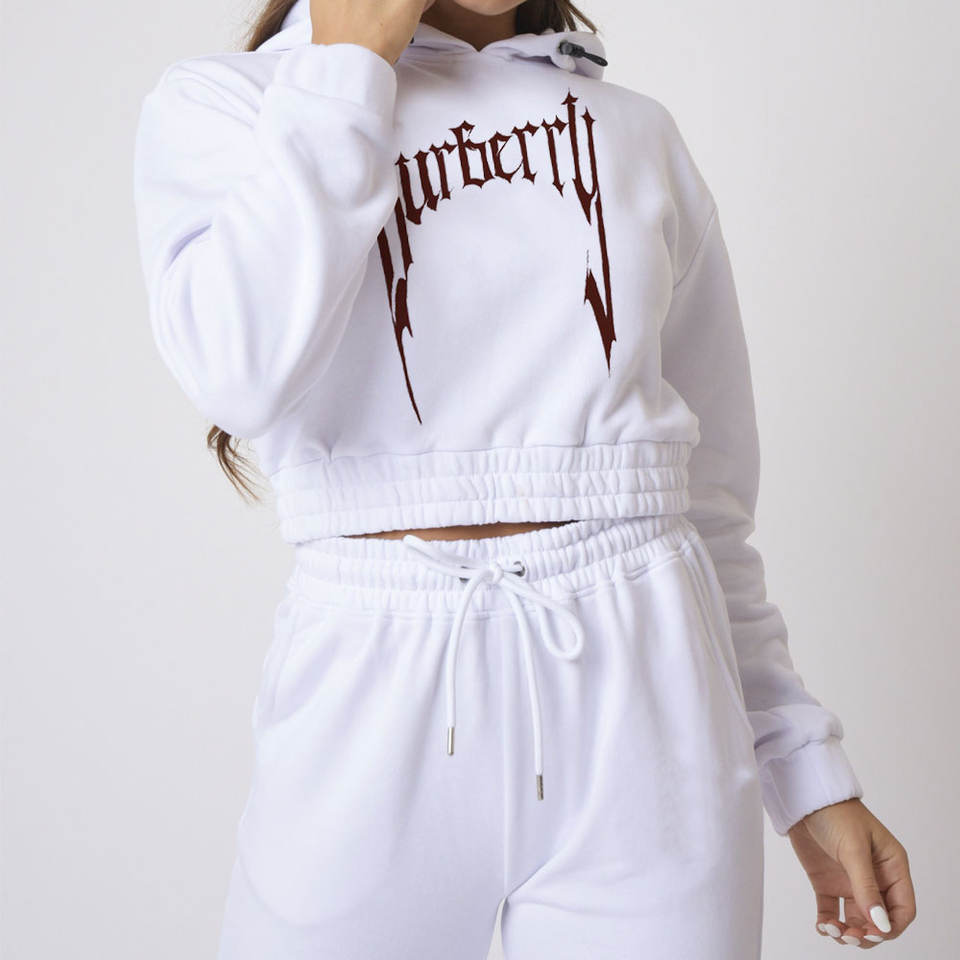 2026 Fashionable Winter Solid Crop Top Tee and Cargo Pants Set with Patches for Women Plus Size 100% Cotton Fleece