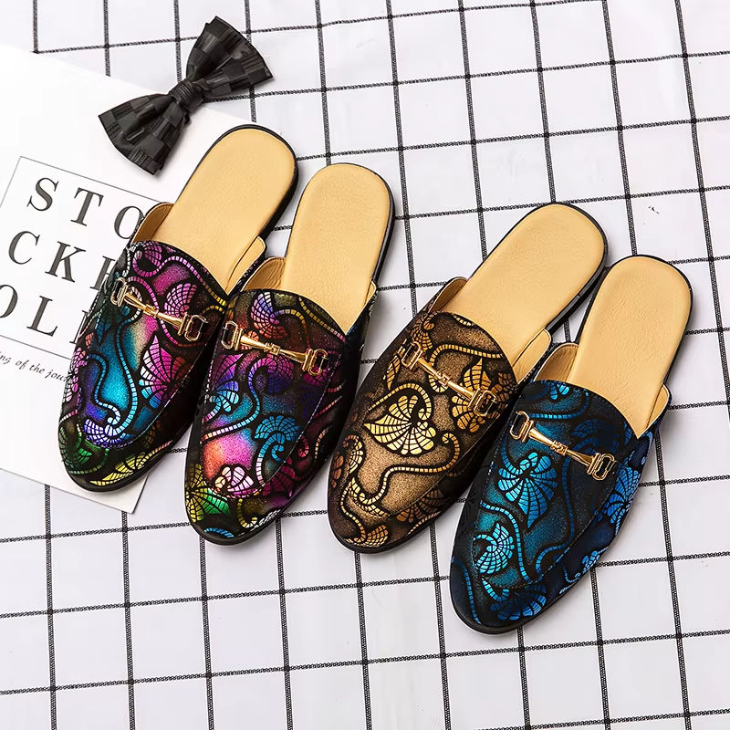 2026 Fashionable lightweight outdoor Four Seasons Half Loafer Plus Size Lazy Leather Shoes Without Heel One-legged Men Slippers