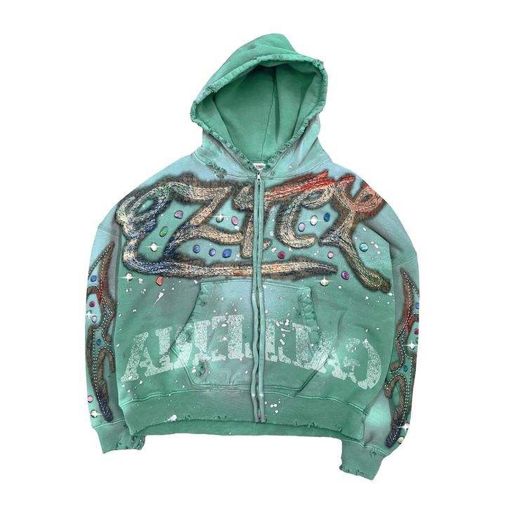 2026 Heavyweight Custom Logo Oversized Hoodies for Men's Acid Wash Sun Fed Zipper Hoodies Screen Printed Rhinestone Hoodie