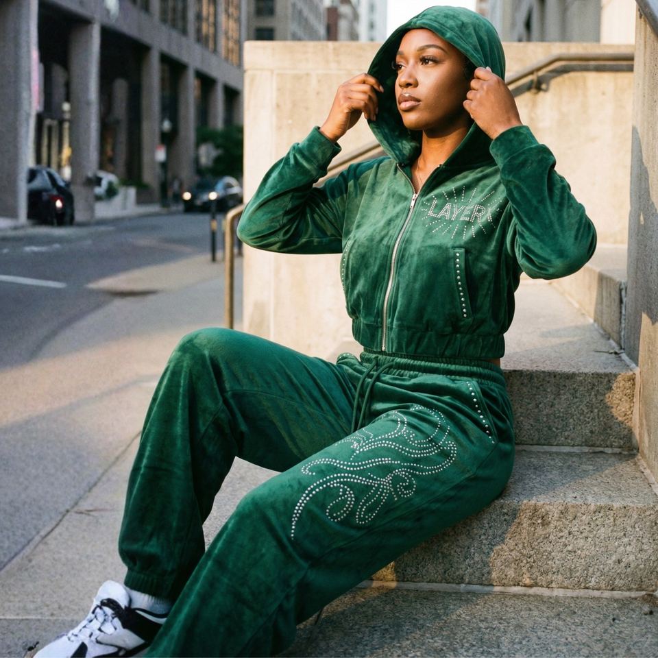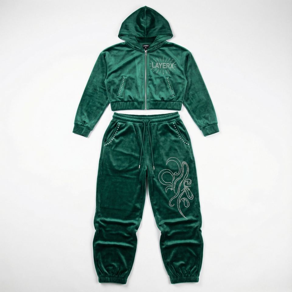 2026 Midweight Custom Wholesale Women Windbreaker Velour Tracksuit Printed Rhinestone Cropped Hoodie Jogger Sets Two Piece Plus