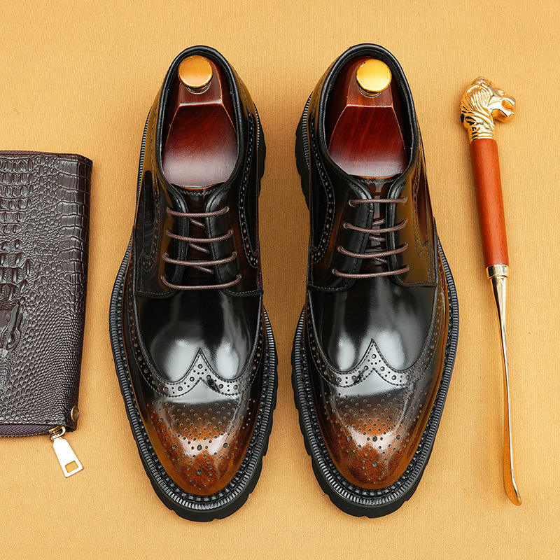 2026 High Quality Men's Patent Leather Glossy Shoes, Carved Brogue Pointed Toe Thick Sole Men's Footwear