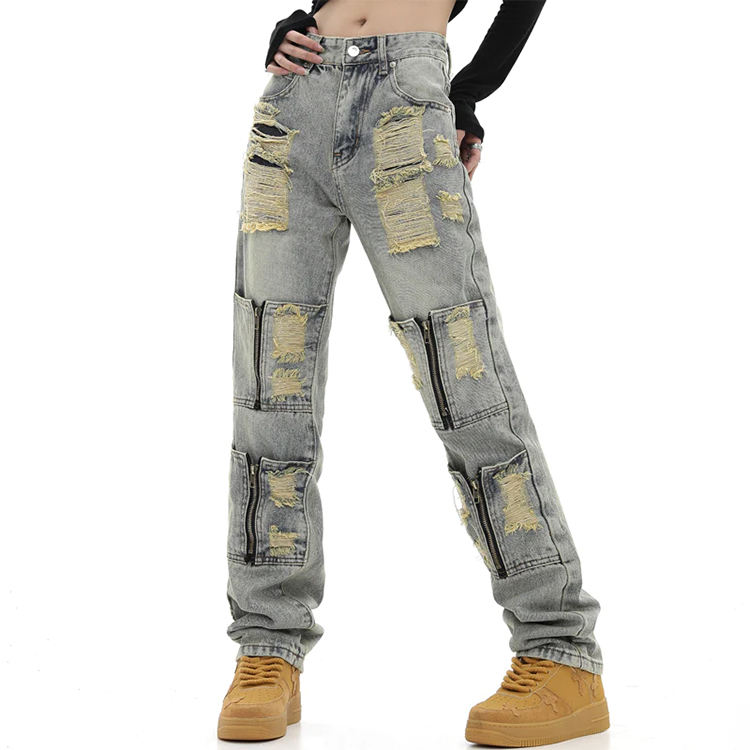 2026 High Street Multi-Pocket Retro Wide Leg Breathable Denim Jeans for Women & Men Loose Fit Mid Waist Spandex/Cotton