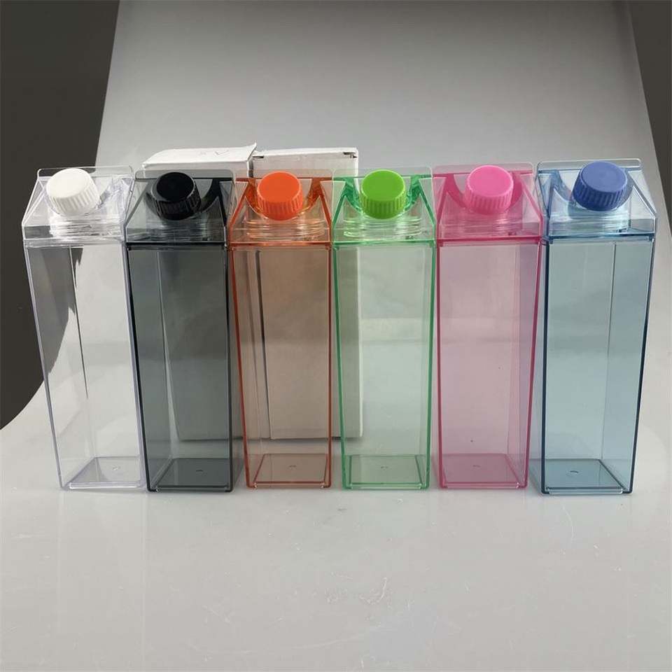 2026 Hot Sale 500Ml 1000Ml Plastic Juice Milk Bottle Square Milk Box Transparent Acrylic Milk Carton Water Bottle