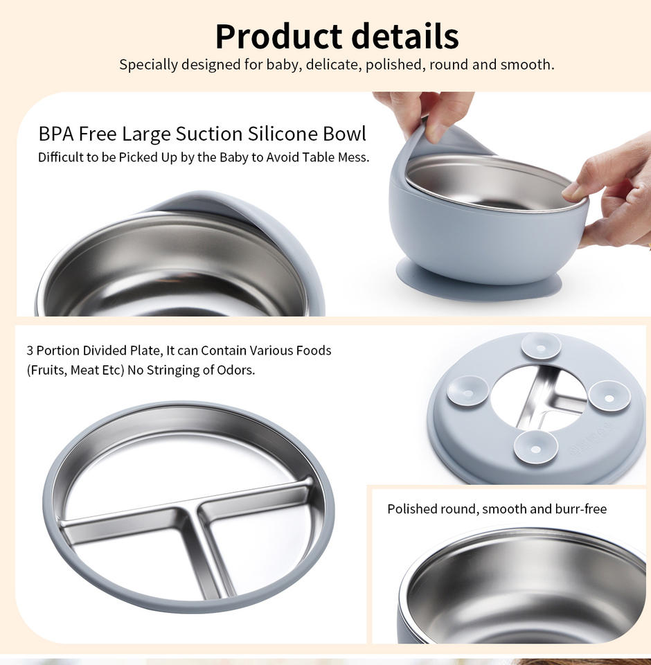 Stainless steel liner, silicone tableware, baby feedingFeature