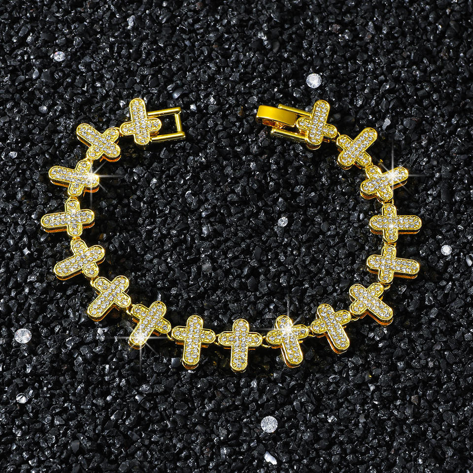 2026 Hot Selling Simple Design Geometric Cross Chain Bracelet Hiphop Alloy Gold Silver Plated Men's Bracelets Fashion Jewelry