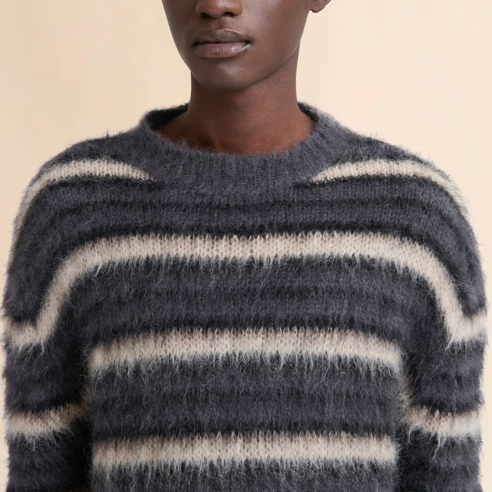 2026 Hot Selling Winter Drop Shoulder stripped Mohair Sweater for men's Crew Neck lon sleeves Winter casual wear men's sweaters