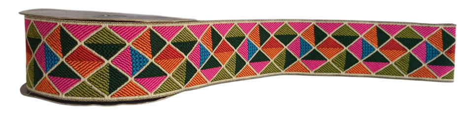 2026 KVR Woven Diamond Pattern Ethnic Lace Trim Vintage Floral Embroidered Jacquard Webbing Lace Ribbon for Clothes Curtains