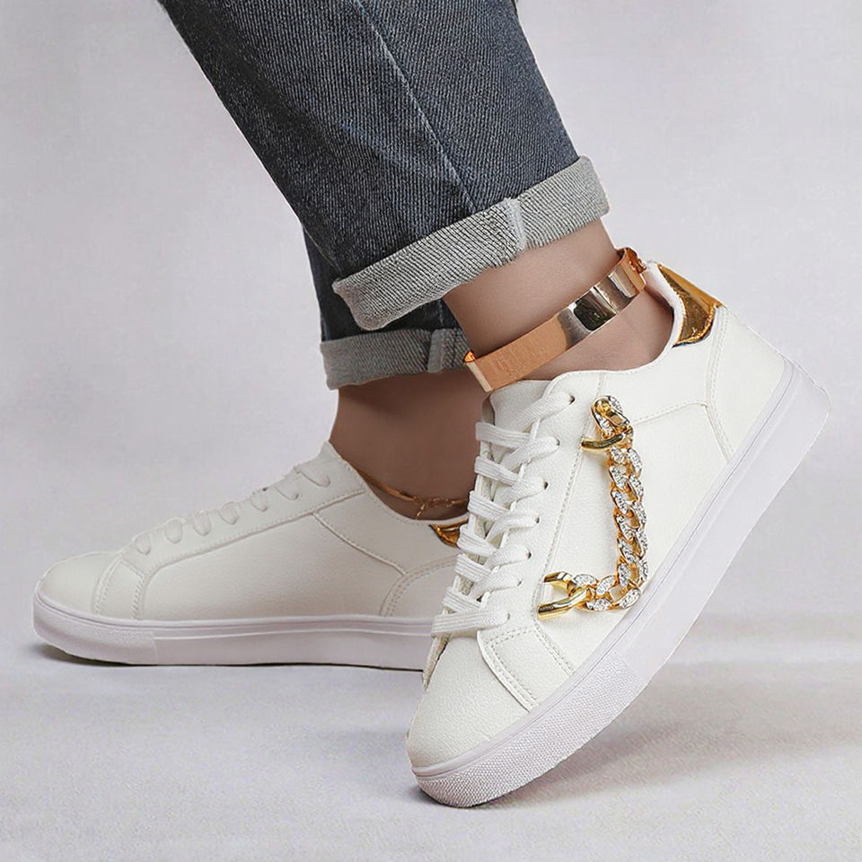 2026 Ladies Shoes New Fashion Breathable Vulcanize Sneakers with Chain Decorative Flat Casual Board for Summer Winter Autumn EVA