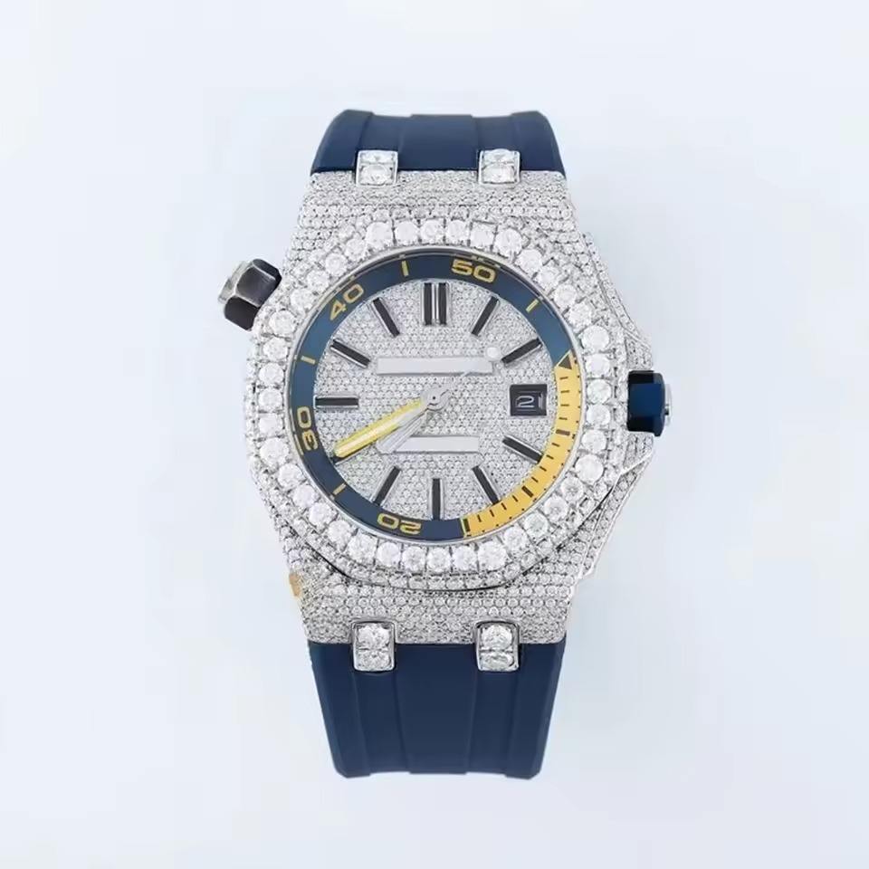 2026 Latest Model Rubber Band Luxury Moissanite Diamond Watch Round Alloy Hip Hop Style Display Steel Strap Perfect Watch