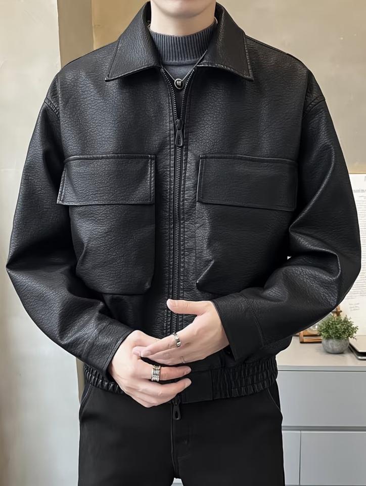 2026 Men's Spring Autumn Leather Jacket Korean Version High-quality Casual Stand Collar Front Logo Custom Embroidery Option