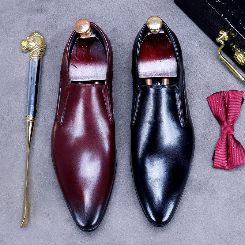 2026 Luxury Leather Men's Business Formal Shoes with Lace-up and Anti-Slip Tips - Genuine Leather Shoes
