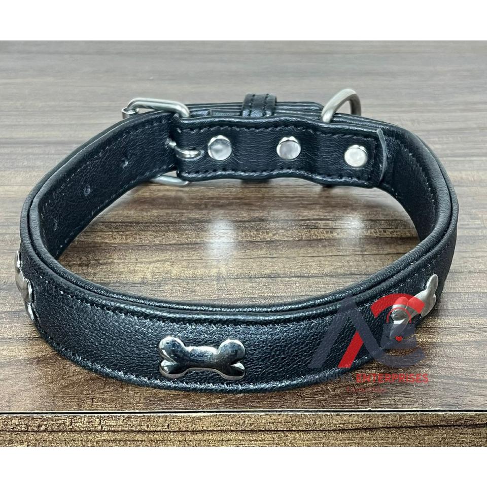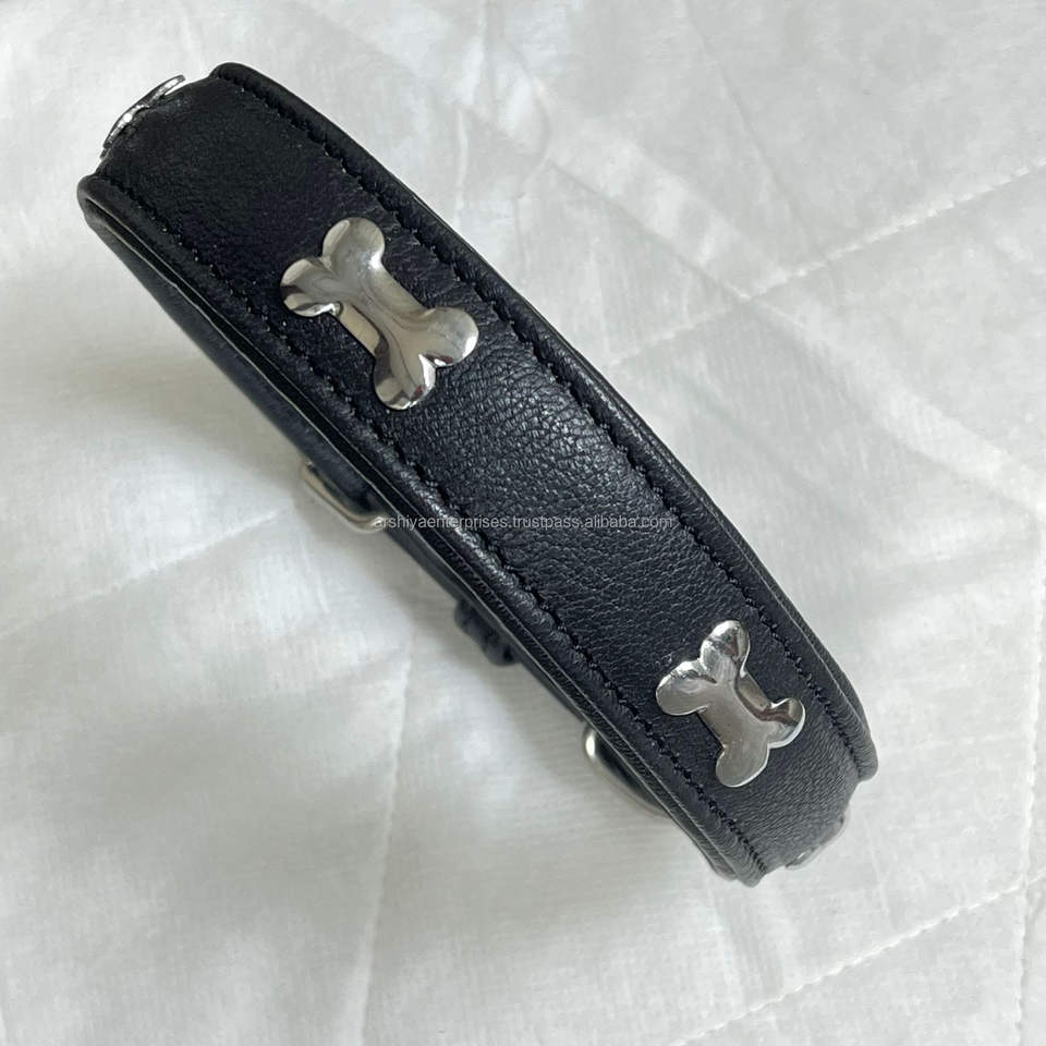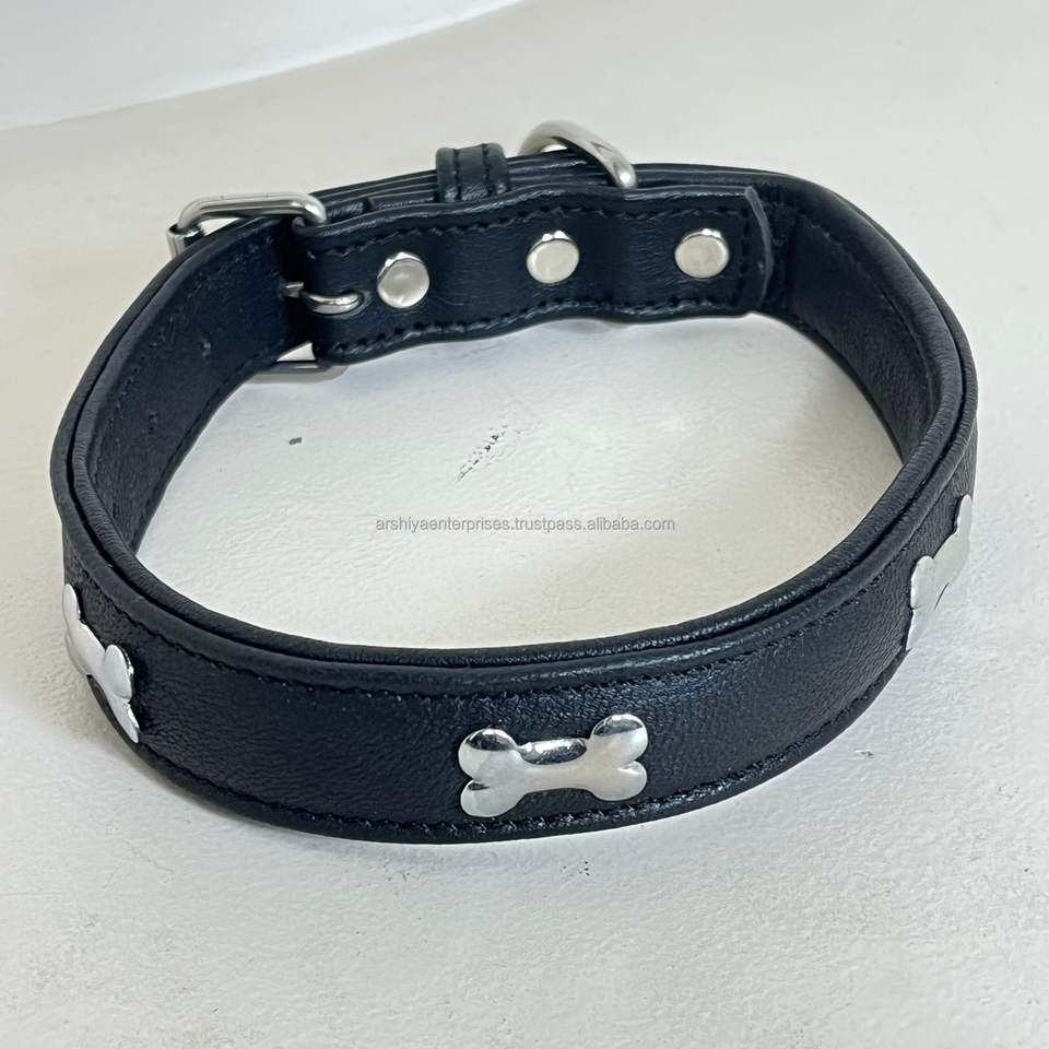 2026 Luxury Ready To Ship Genuine Cowhide Leather Adjustable Buckle Dog Collar with Metal Bone Design Gift Accessories for Pets