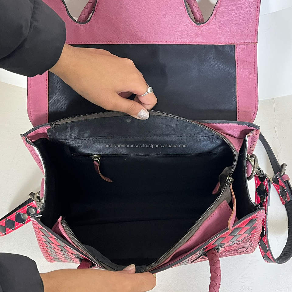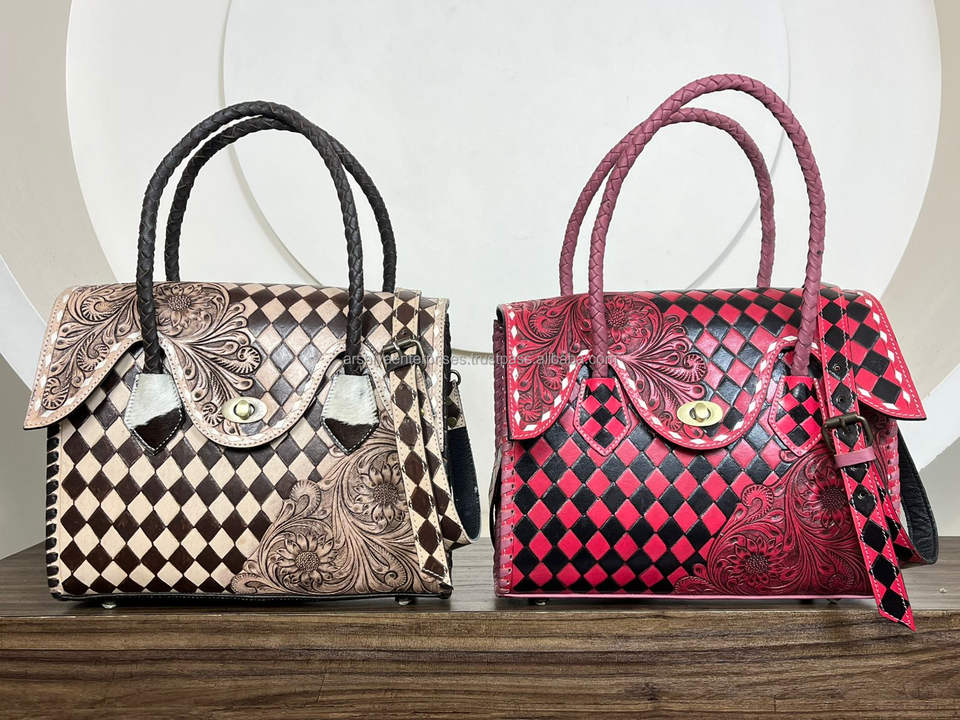 Product name:Hand-Tooled Checkered Leather Handbag