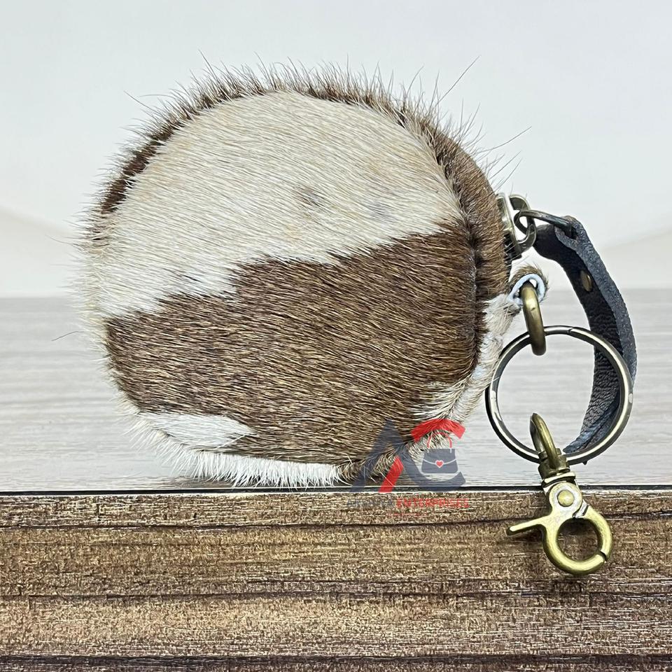 2026 March Expo Real Hair on Cowhide Leather Coin Purse Keychain Mini Round Shape Zipper Pouch For Coins, Keys & Small Essential